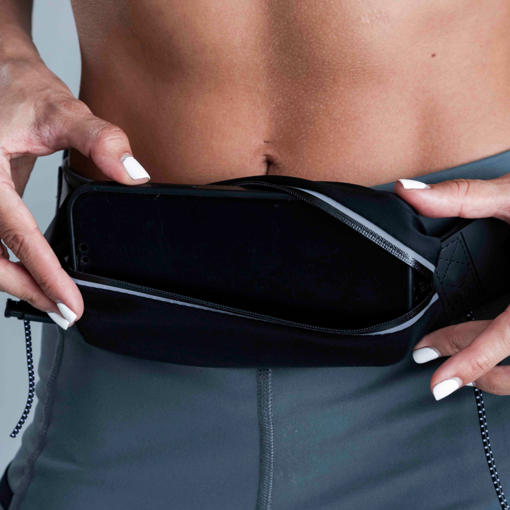 El bolsillo central expandible cuenta con un cierre impermeable, protegiendo tu celular (compatible con la mayoría de smartphones), documentos y dinero del sudor o la lluvia. Además, incluye compartimentos laterales de fácil acceso, diseñados para llevar tus geles, sales o llaves.